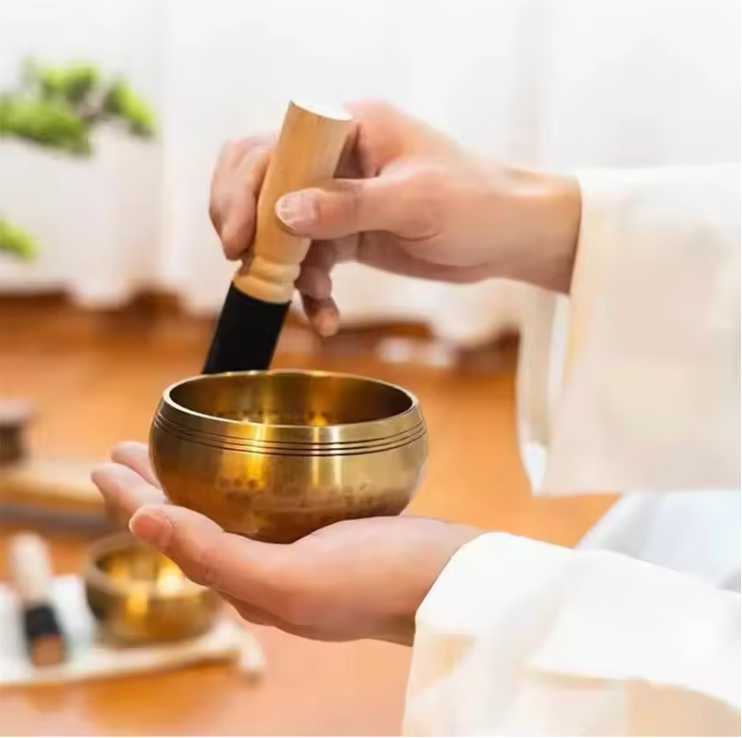 Le bol tibétain est un compagnon idéal pour la méditation, qu’elle soit silencieuse ou guidée. Il agit comme un ancrage sonore qui stabilise la posture intérieure, apaise le mental et facilite l’émergence d’un état méditatif profond.