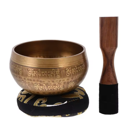 Ce bol chantant est façonné à la main dans un cuivre pur à la teinte dorée profonde, symbole ancestral de transformation énergétique et de transmission spirituelle. Son toucher brut, ses finitions délicates, et sa fabrication artisanale en font une pièce unique, chargée d'intention et de puissance vibratoire.