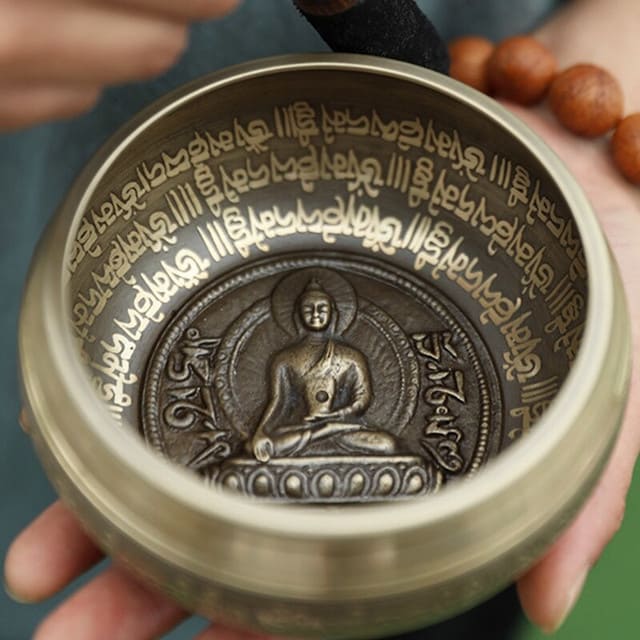 Le bol tibétain est un compagnon idéal pour la méditation, qu’elle soit silencieuse ou guidée. Il agit comme un ancrage sonore qui stabilise la posture intérieure, apaise le mental et facilite l’émergence d’un état méditatif profond.