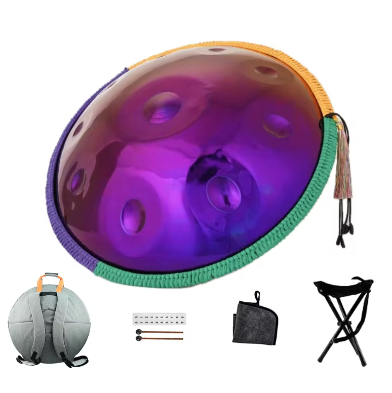 Le Handpan Éveil Spirituel est un instrument conçu pour accompagner les moments de recentrage, de connexion profonde et de transformation intérieure. Sa tonalité chaude et mystique invite à l’introspection, tandis que sa couleur mauve foncé évoque la sagesse, la méditation et la spiritualité universelle.