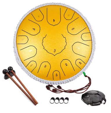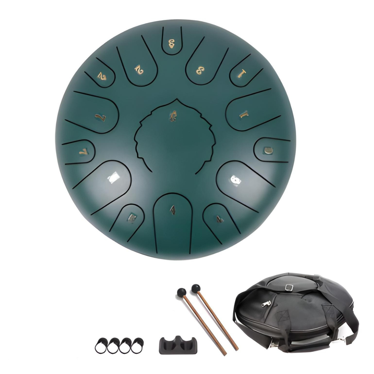 Le tongue drum est un instrument de percussion mélodique en acier. Facile à jouer, il produit des sons doux, méditatifs et harmonieux grâce à ses « langues » découpées dans sa surface. Il est idéal pour la relaxation, la méditation, le yoga, les pratiques de pleine conscience ou tout simplement pour explorer la musique intuitivement.